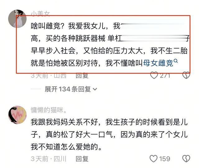 要知道,雌竞一词,搁动物层面,是为争取繁衍后代,出现的同性相争的现象,若放在母女关系上,显然是不合适的。